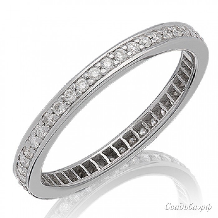 Изящное обручальное колечко отечественного производства станет эффектным дополнением вашего образа и отличным символом вечного союза с вашей второй половинкой. Ободок выполнен из белого золота и декорирован целой россыпью драгоценных камней. В кольце 20 размера насчитывается 45 бриллиантов общим весом 0,41к.
