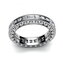 Эксклюзивное обручальное кольцо, изготовленное из белого золота в оригинальном дизайнерском ключе. Художественная задумка модели состоит в строгих геометрических формах, что придает кольцу строгость и выдержанность. Кольцо украшено по всему диаметру множеством бриллиантов круглой и прямоугольной формы.