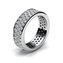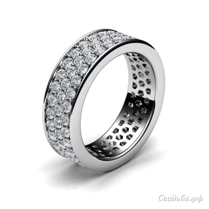 Это изящное обручальное кольцо, изготовленное из золота белого цвета, украшено множеством бриллиантов, выложенных тремя горизонтальными дорожками по всему диаметру кольца. Чистота и великолепная огранка придают кольцу невероятный блеск и сияние, что не останется не замеченным окружающими. Выбирая данную модель обручального кольца, Вы подчеркнете свой стиль и красоту.
