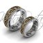 Оригинальные парные обручальные кольца из золота разных видов. Узоры - непременный свадебный атрибут во многих традициях мира. В этих изделиях, благодаря яркому контрасту металлов, узоры выглядят ультра современно и модно. Ребристое окаймление по бокам делает эти ювелирные украшения стильными и заметными.