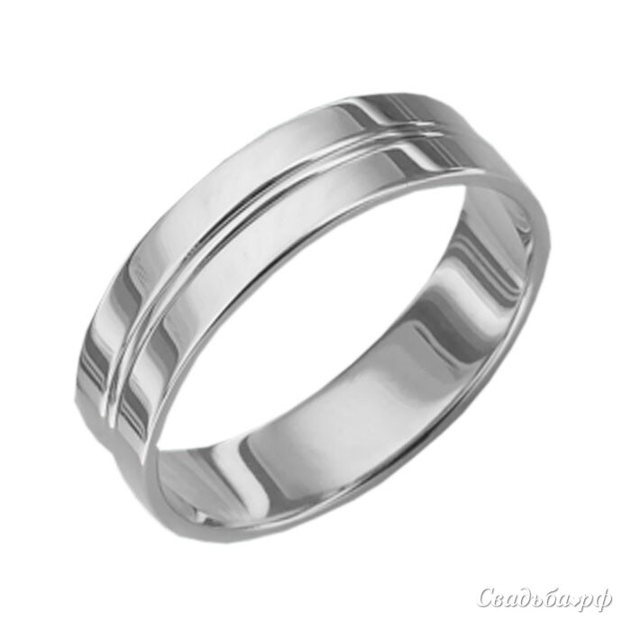 Изящное обручальное кольцо с глянцевой полированной поверхностью. По художественной задумке визуально кольцо делит пополам широкая горизонтальная линия, проходящая по всему диаметру украшения. Надевая данное обручальное кольцо на палец, непременно стоит рассчитывать на внимание окружающих и комплименты.