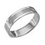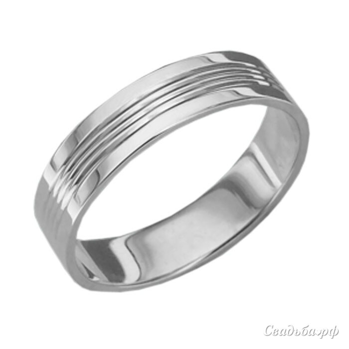 Классическая модель обручального кольца, изготовленная из белого золота, дополнена простым геометрическим узором. Вдоль всей наружной поверхности кольца проходят глубокие горизонтальные линии. Данное обручальное кольцо свидетельствует о строгом элегантном вкусе своего обладателя, и одновременно вносит в его обаз определенную изюминку.