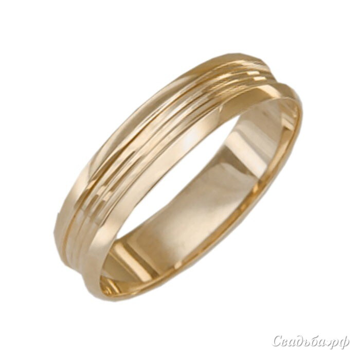 Классический образец обручального кольца, дополненный интересным дизайнерским решением. По поверхности ювелирного украшения проходят глубокие горизонтальные линии, визуально делящие кольцо на несколько частей. Кольцо подчеркивает строгий вкус своего обладателя и легко сочетается с другими ювелирными украшениями.