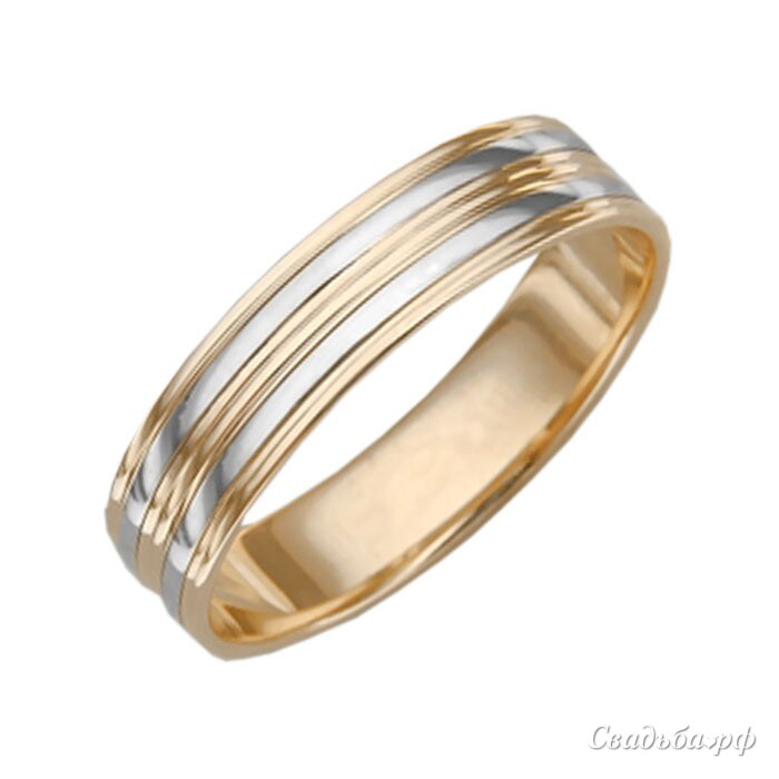 Обручальное кольцо, изготовленное из комбинации золота. Художественный элемент данной модели состоит в чередование горизонтальных ободков двух цветов между собой. Кольцо будто бы символизирует две отдельные личности, в процессе их переплетения между собой. Данная модель обручального кольца не останется без внимания окружающих.