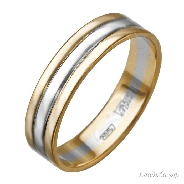 Это великолепное обручальное кольцо сочетает в себе простоту и элегантность. Оно изготовлено из комбинированного драгоценного материала. Отсутствие лишних деталей на кольце, а также стильный дизайн проявят человека очень благородного и знающего, что такое изысканность и настоящий престиж.