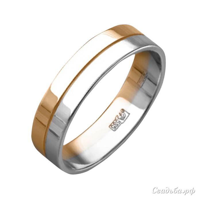 Великолепное обручальное кольцо из нескольких видов драгоценного металла придётся по вкусу даже самым искушённым модникам. Широкий ободок украшения образован двумя колечками, серебристым и золотистым. Дизайн этого кольца олицетворяет слияние двух судеб. С таким эффектным украшением вы всегда будете в центре всеобщего внимания.