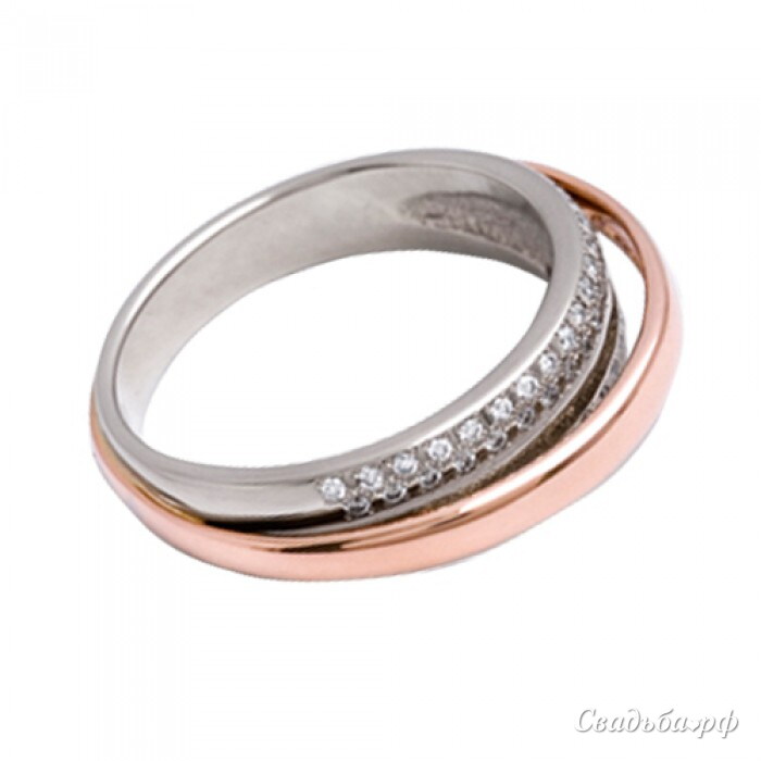 Оригинальное обручальное кольцо с двойным ободком из нескольких видов драгоценного металла. Серебристая часть представленной модели декорирована сверкающей россыпью бриллиантов безупречной огранки. Золотистая часть колечка отличается строгостью форм и совершенством дизайна. Великолепное сочетание классики и модерна!