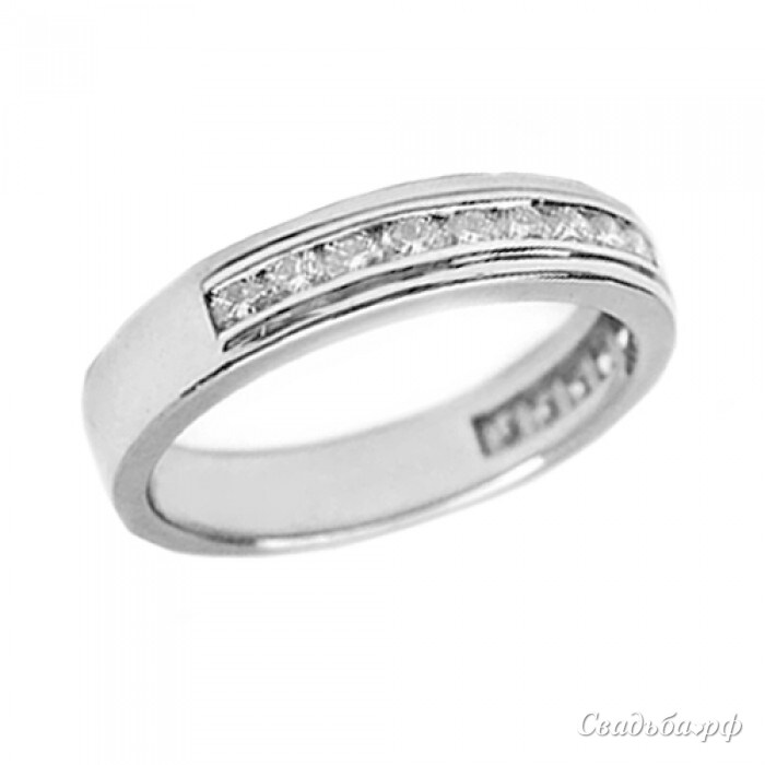 Это обручальное кольцо из белого золота является прекрасным экземпляром авторской работы. Крупные бриллианты безупречной огранки, вставленные по полукругу, блестят всеми своими гранями за счет сквозного прохождения света. Представленное ювелирное изделие отличается совершенными формами и высоким качеством исполнения.