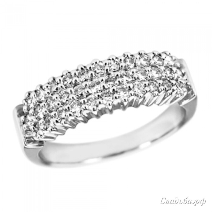 Стильное обручальное кольцо с целой россыпью чистейших бриллиантов станет прекрасным украшением безымянного пальчика невесты. Широкий ободок представленного ювелирного изделия выполнен из мерцающего белого золота. Модель отличается высоким качеством и совершенными формами. Носить такое замечательное колечко приятно и комфортно.