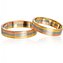 Комплект парных обручальных колец матовых, плоских, из комбинированного (красного, белого и желтого) золота (синтеринг) 585 пробы, с алмазной обработкой на стыке цветов придающей блеск, ширина 4,5мм. В наличии.