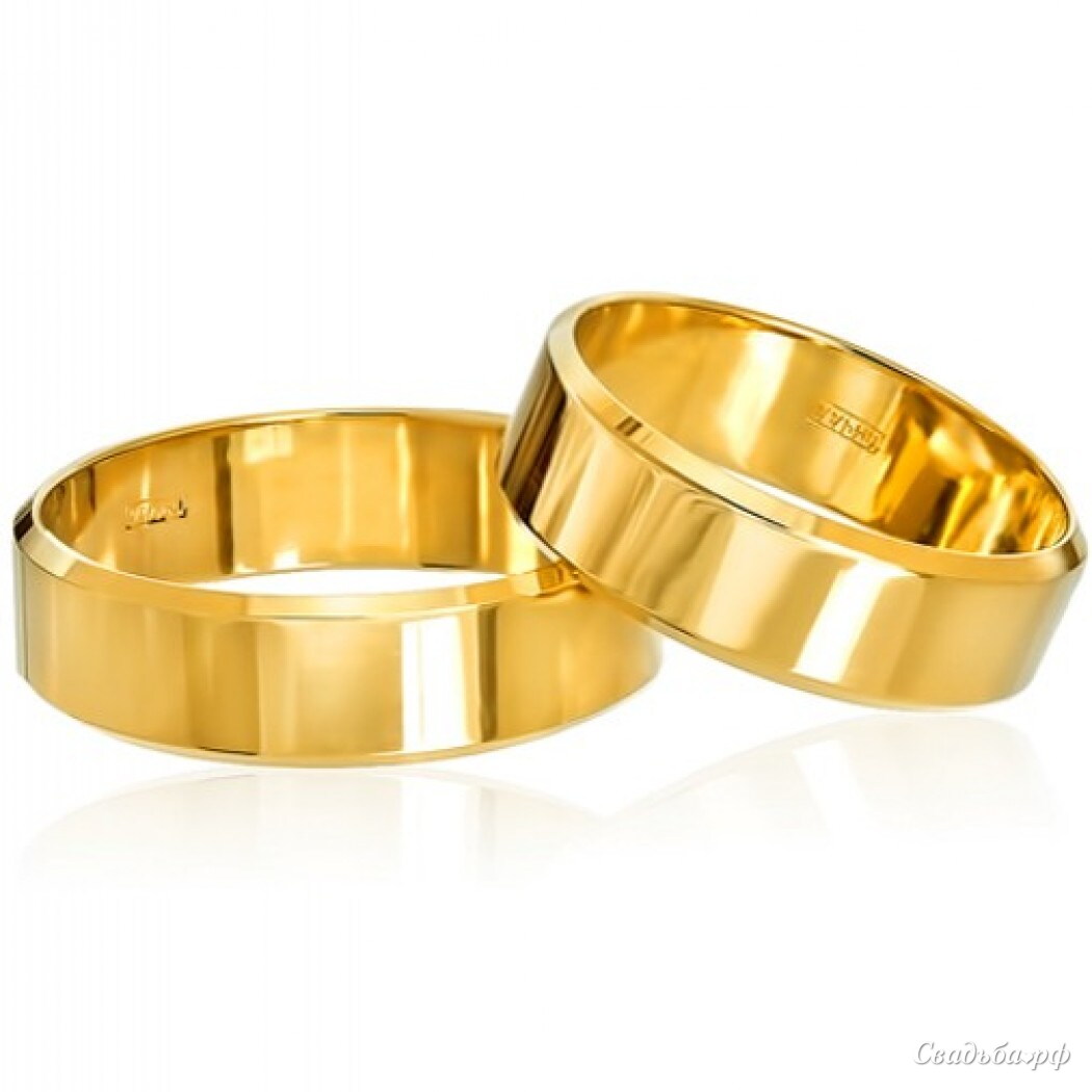 Комплект парных обручальных колец гладких, плоских, с фаской из желтого золота, ширина 6мм 585 пробы. В наличии. Стильные и удобные.