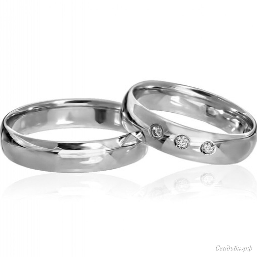 Парные обручальные кольца из белого золота, классические, в комфортной посадке (ещё называют ComfortFit или Еврокомфорт) за счёт чего практичные и удобные, ширина 5мм. Женское с 3 Бриллиантами Кр 57 0,07 ct 3/5 A. В наличии.
