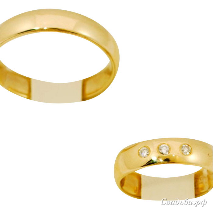 Восхитительные обручальные кольца Комфорт из жёлтого золота 585 пробы никогда не выйдут из моды. Женское колечко с ободком шириной 5мм декорировано тремя бриллиантами 0,075 ct 3/4. Размер с 15,0 по 18. Мужская модель такой же ширины представлена в размере с 15,0 по 22,0. Любой другой размер можно изготовить на заказ.