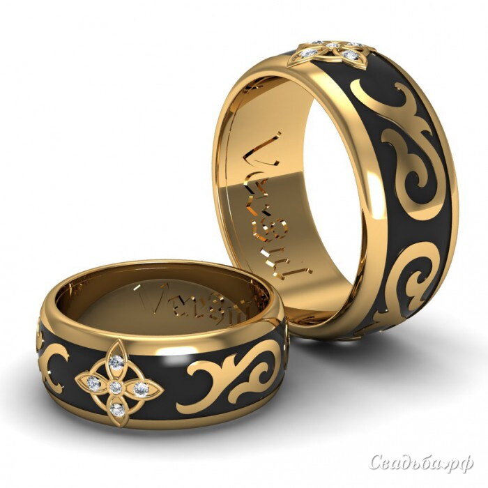 Эти эффектные обручальные кольца могут быть выполнены из металла на ваш выбор. Вставки могут быть как бриллианты, так и любые другие камни. Эмаль также отличается разнообразием цветов. Колечки отличаются стильным узором и высоким качеством исполнения. Для получения более подробной информации звоните в наш ювелирный салон.