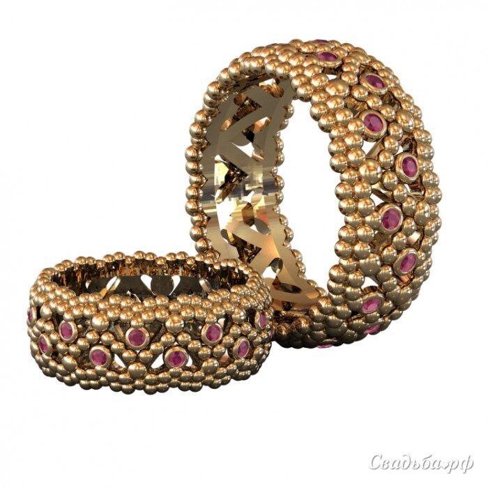 Эффектные обручальные кольца могут быть выполнены из металла на ваш выбор. Вставки могут быть как бриллианты, так и любые другие камни. Эти модели отличаются оригинальной фактурой. Широкие ободки декорированы миниатюрными бусинами из металла. Для получения более подробной информации звоните в наш ювелирный салон.