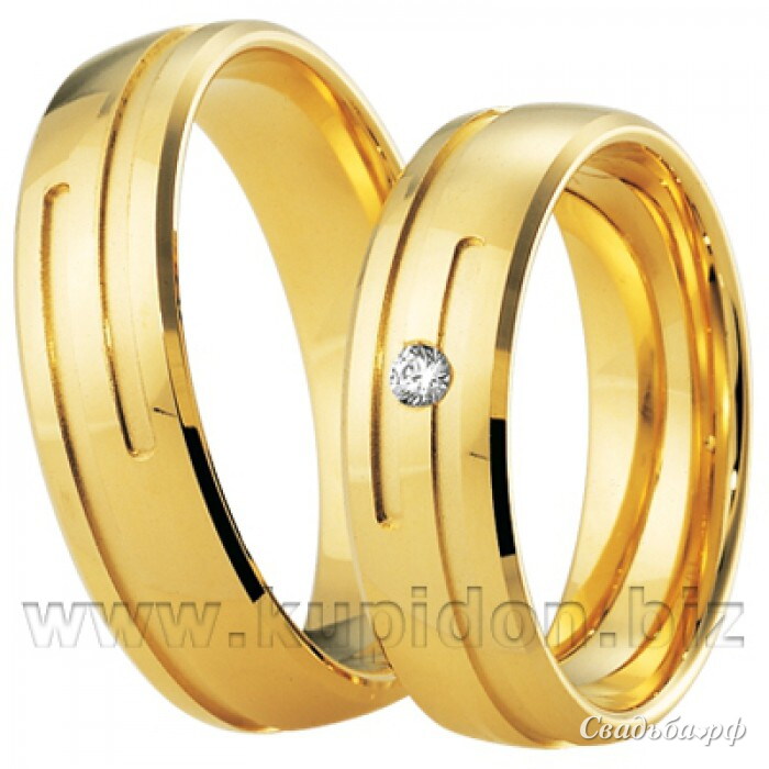 Изысканные, стильные и современные по дизайну эти парные свадебные кольца из коллекции «Inspiration» восхитят любого, кто знает толк в дорогих и элегантных украшениях. Они изготовлены из желтого золота, на внешней поверхности имеют необычный выгравированный геометрический узор, на женском кольце красуется небольшой бриллиант.
