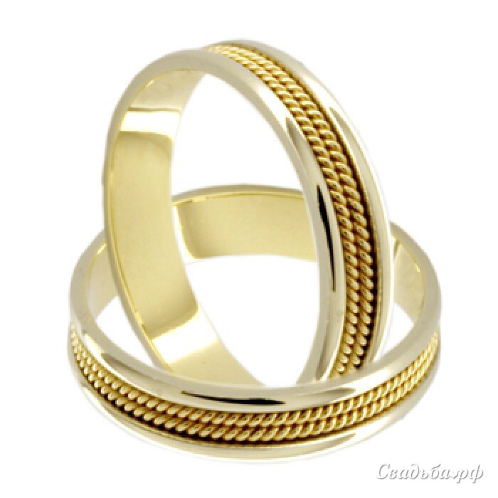 Эти обручальные кольца выполнены из белого и желтого золота. Они украшены двумя золотистыми сплетенными полосами. Эти полосы похожи на два пути, которые тесно сплетены между собой. Они символизируют Ваши судьбы, которые связаны неразрывными узами. Гладко отполированная внутренняя поверхность этих колец делает их очень удобными. И Вы можете носить их не снимая.
