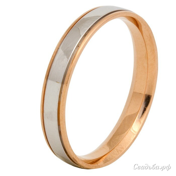 Изящное колечко выполнено из нескольких видов драгоценного металла. Золотистая основа дополнена широкой серебристой вставкой. Два продольных желобка придают этому обручальному кольцу особый шик. Представленное изделие от лучших отечественных ювелиров будет отлично сочетаться с другими украшениями.