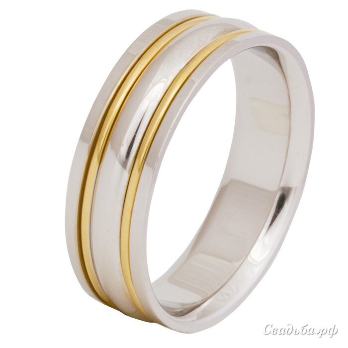 Очаровательное кольцо отечественного производства никого не оставит равнодушным. Широкий ободок из нескольких видов драгоценного металла отличается безупречными формами и оригинальным дизайном. Две золотистые полосы придают этому обручальному колечку особый шик. Изделие очень удобно будет сидеть на пальчике.