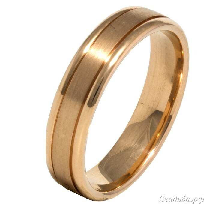 Эффектное колечко выполнено из высококачественного красного золота. Широкая матовая полоса отлично сочетается с двумя сверкающими вставками по бокам. Эти части отделены друг от друга продольными выемками. Представленная модель отечественного производства отличается безупречными формами и продуманным дизайном.