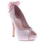 Нежно-розовые туфельки с открытыми носиками и восхитительными бантиками на пятках придутся по душе самым романтичным невестам. Верхний край туфель декорирован бусинами. Не теряйте времени, звоните, мы занимаемся ТОЛЬКО свадебной обувью! 8-499-403-15-04! Для Москвы примерка, в другие города возможна доставка!
