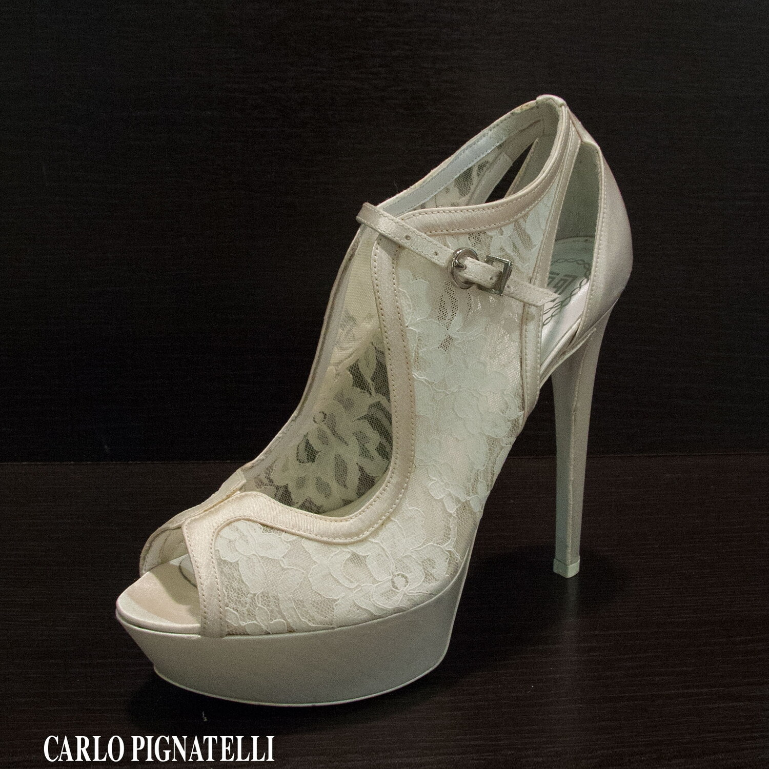 Необычные туфли от итальянского свадебного дизайнера Carlo Pignatelli. Свадебные туфли, выполненные из высококачественной перламутровой кожи и кружевной сетки, предлагаются в кремовом цвете и айвори. Удобная высота каблука обеспечит вам комфорт на протяжении всего торжества, небольшая платформа придаст стройность ножкам. Эта изящная обувь придется по вкусу даже самым взыскательным невестам.