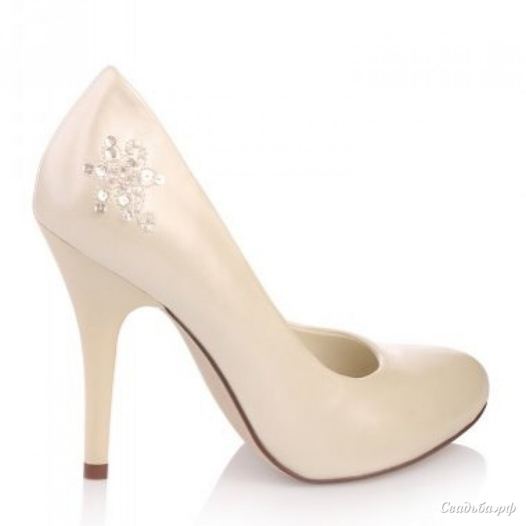 Классические свадебные туфли. Из декора только нежная вышивка сбоку. Каблук 10 см. Отличный вариант и для вечернего наряда.