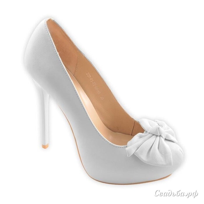 Эти роскошные туфельки созданы для любительниц головокружительных шпилек. Модель выполнена из натуральной кожи безупречного белого цвета. Закрытый мысок декорирован кокетливым бантом. Несмотря на высокий каблук, туфли отличаются комфортом. Идеальный вариант для миниатюрных невест, желающих прибавить пару сантиметров к своему росту.