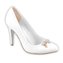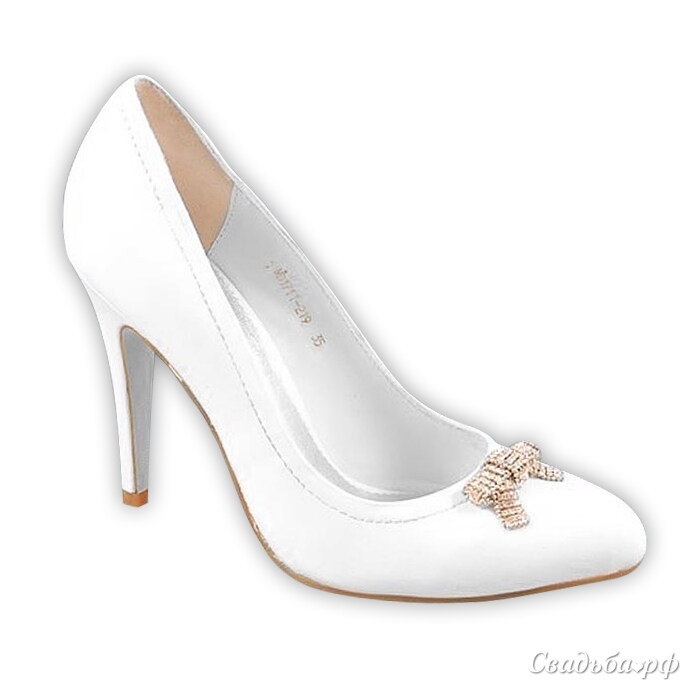 Классические туфли-лодки, выполненные из натуральной кожи безупречного белого цвета, станут эффектным штрихом Вашего свадебного образа. Кокетливые бантики с ослепительными стразами уютно расположились на закрытых мысках. Высокие каблучки добавят несколько сантиметров Вашему росту и подчеркнут стройность ножек.