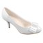 Очаровательные туфли-лодочки, выполненные из натуральной кожи белоснежного цвета, созданы для самых утончённых невест. Представленная модель декорирована кокетливыми бантами с ослепительными стразами, уютно разместившимися на закрытых мысках туфелек. Миниатюрные каблучки придадут всему Вашему образу женственность и романтичность.