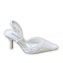 Испанский бренд Menbur предлагает необычные туфли на ремешке с открытой пяткой и острым носком. Невысокий устойчивый каблучок рюмка обеспечит вам комфорт на весь праздник. Туфли декорированы плиссированной тканью, расшиты бисером и пайетками. В комплекте предлагается сумочка, украшенная в одном стиле с туфлями.