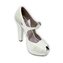 Изюминка этих свадебных босоножек от известной итальянской фирмы - удачное сочетание белой матовой кожи и лаковой кожи цвета айвори с вкраплениями перламутра. Пятка закрыта, на носке небольшой аккуратный вырез. Тоненький ремешок с застежкой дополнительно фиксирует ножку. Платформа и устойчивый каблук зрительно удлиняют ноги, не жертвуя комфортом.