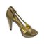 Необычные босоножки, выполненные из кожи темно-золотистого цвета, идеально подойдут для свадебного торжества. Закрытая пятка, от которой тоненький ремешок с застежкой тянется до тонкой перемычки на пальцах. Устойчивый каблук и невысокая платформа визуально удлинят ноги, не жертвуя комфортом и удобной ноской. Эти босоножки не оставят равнодушной даже самую привередливую модницу.