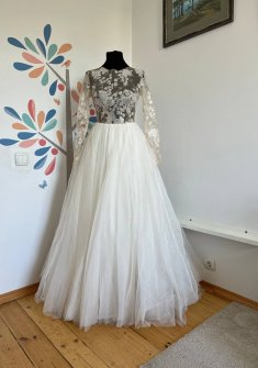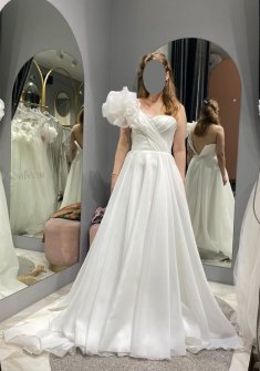 - Подержанные наряды обычно бывают в идеальном состоянии. Во-первых, они действительно надеваются всего один раз, а во-вторых, после торжества свадебное платье БУ сдается в химчистку, и лишь затем выставляется на продажу.