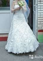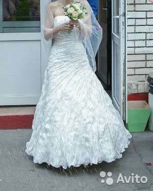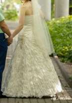1) Юбка сделана "мятой", за счет этого его не надо утюжить, отпаривать, и когда вы будете в нем садиться, сзади не будет мяться. 2) Юбка сделана "рыбкой", за счет этого платье безумно комфортное и не помешает вам веселиться весь ваш замечательный день 3) На груди чуть- чуть расшито, что делает вид платья очень элегантным и визуально придает изюминку. Покупала в июле 2016 года на Польской выставке за 65 000, но за счет того, что оно все таки было б/у, продам его всего за 12 000 рублей.