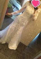 Продам НОВОЕ свадебное платье-трансформер (рыбка + съёмная юбка), р. 44-46. Вышито кружевом + стразы, камушки, кристаллы, пайетки.