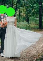 Платье из натурального шелка. Идеальное состояние. Сшито по индивидуальному эскизу. Поясок на талии, верх расшит бисером. Юбка многослойная, с разрезом. Цвет - айвори. Фата до пола в подарок. Без химчистки, пятен нет. Разумный торг уместен.