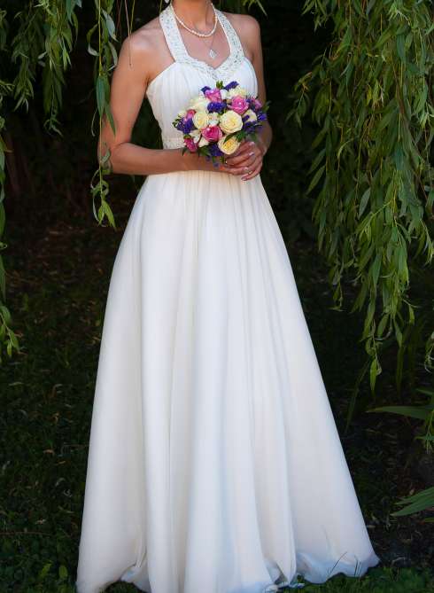 Продам стильное свадебное платье (цвет айвори), на рост примерно 175 см. Вшит лиф, сзади шнуровка. После химчистки. Платье шикарно сидит, в подарок украшение для волос. Производство - Германия.