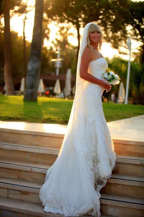 Продам элегантное брендовое свадебное платье в стиле "рыбка" от итальянского дизайнера (цвет айвори, шампань), пошив кружева ручной работы, приобреталось в Москве в Свадебном центре Кристалл в бутике Lari за 70 000 рублей, продам за 55 000 рублей. Платье было надето два раза, состояние - как новое, отдавалось в химчистку, без малейших повреждений (дырок и зацепок). Торг уместен.