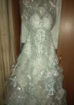 Платье одевалось один раз. К платью идут кольца на подъюбник, перчатки. Платье расшито стразами. После химчистки. Подойдет на невысокую девушку с полной грудью. Размер регулируется за счет утягивания корсета с 46 по 52.