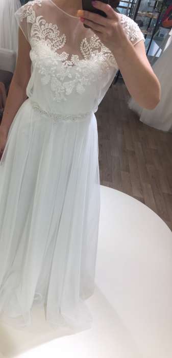 Платье цвета айвори, скрытый корсет. Небольшой шлейф, очень легкое, воздушное. Идеальное состояние, после химчистки. Вышивка. В подарок халатик с надписью 'невеста'.