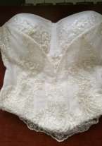 Отличное платье (корсет и юбка) от известного свадебного дизайнера Оксаны Мухи. Платье имеет два цвета. Белый и айвори. Корсет расшит стеклярусом и бисером, юбка также имеет элементы вышивки. На мой размер 46 к юбке шили вкладыш для расширения талии. Юбка требует небольшого ремонта (подшить в трех местах внешнюю юбку, чтобы визуально получились воланы). Также к юбке имеется подюбник в два кольца. Доп.инфо, фото и прочее Viber/WA.