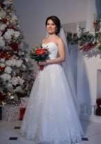 Корсетное платье А-силуэта (химчистка перед покупкой и шубка в подарок!). Размер: 42-46 (корсет регулируется). Рост: 155 - 165 (свой рост 157, было подшито под каблук 10 см). Лиф и подол платья расшиты кружевом. Комфортная фатиновая юбка, не затрудняет движения. Пышность платья достигается за счет подъюбников и ее можно "отрегулировать". Платье в идеальном состоянии, надевалось один раз. Свадьба была зимой, несмотря на открытые плечи, было очень тепло :)