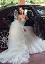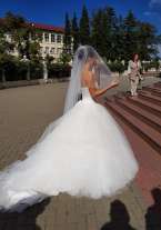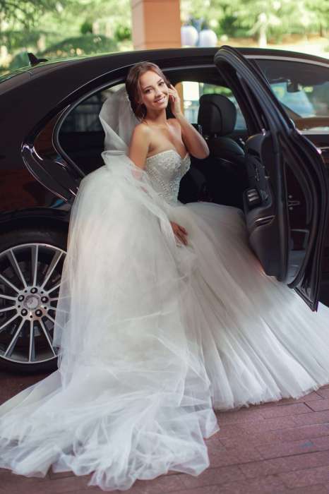 Платье украинского дизайнера. Корсет расшит бисером, стразами Сваровски и бусинами. Юбка выполнена из фатина. Шлейф 30 см (его можно подобрать и застегнуть,чтобы было удобнее танцевать). Состояние платья идеальное (отдавали дополнительно в химчистку после свадьбы) с платьем отдаю подъюбник. Так же подойдёт 38-40 размер, рост до 170. ВОЗМОЖЕН ТОРГ. Пишите в вотсап, пришлю больше фото.