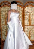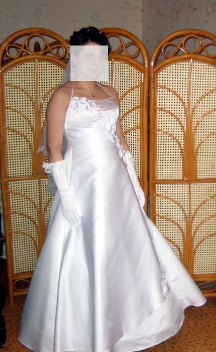 Предлагаю белоснежное свадебное платье из атласного материала. Платье с корсетом + подъюбник (с ним выглядит пышно). Лиф вышит цветами, на юбке сбоку разрез. К образу в наличие имеется фата французского кружева, ручной работы + украшения в волосы, которые крепят фату. Также, ввиду похолодания на улице, есть белая короткая шубка (искус.мех). Ну и перчатки само собой разумеется.