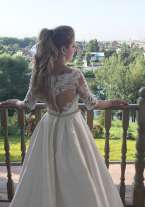 Прекрасное платье испанского известного дизайнера, после химчистки, возможен торг, сидит идеально. В подарок отдам канкан под юбку (подъюбник), есть петля на юбке, чтобы удобно держать и не пачкать подол.