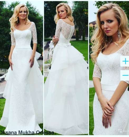 Платье Оксаны Мухи. Состояние идеальное. Юбка отстегивается. Приехать померить можно на м. Октябрьское поле. В наличии несколько дизайнерских платьев. Имеются новые, так же есть аксессуары.
