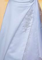 Корсет и юбка украшены бисером и камнями, на талии переливающаяся брошь из камней. На юбке несколько вертикальных складок с двумя лентами от банта на броше. Регулируется шнуровкой. Имеется вставка в корсет, что позволяет или оголить спинку или закрыть. Очень эффектное, элегантное и бесподобное платье. А самое Важно платье легкое и удобное. К платью предлагаются болеро украшенное бисером и камнями, подъюбник с кольцами. Платье после химчистки, идеально чистое и без каких-либо повреждений.