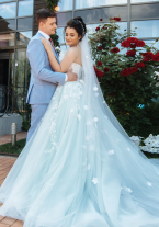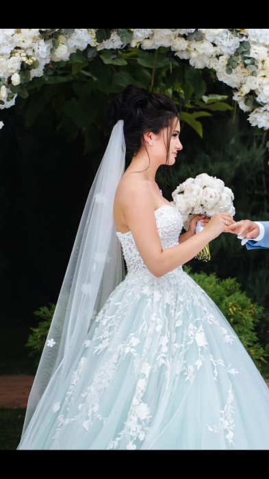 Свадебное платье бу, цвет голубой, цена 40 000 руб. №11314