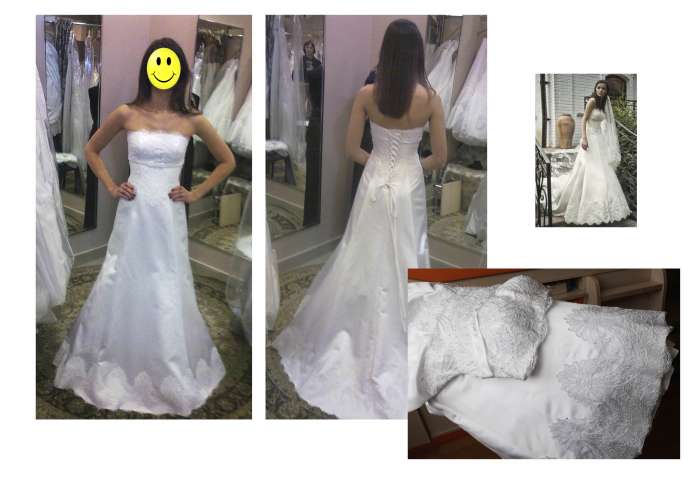 В хорошем состоянии, после химчистки. Шнуровка сзади способствует идеальной посадке по фигуре. К платью прилагается кружевная накидка-фата.